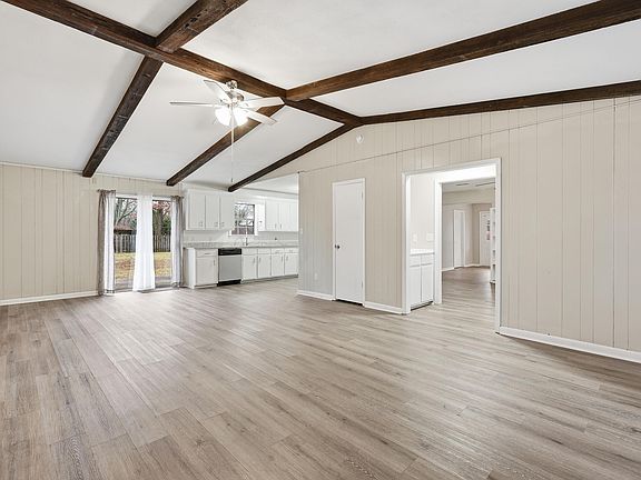 Welcome to this spacious and thoughtfully updated 3-bedroom, 2-bath home, ideally located at the end of a quiet cul-de-sac on 0.50 acres shaded by mature oak trees. With three distinct living spaces, this home offers exceptional flexibility and character rarely found in one property. One living area features a cozy wood-burning stove and a bay window, perfect for relaxing with a book or morning coffee. The second living space includes a built-in bookcase, ideal for a home office, formal dining room, or den. The third living area truly stands out with tall, vaulted ceilings accented by vintage wooden beams, creating a warm and inviting focal point for entertaining. The home has been updated throughout with LED lighting and waterproof LVP flooring in every room. The kitchen shines with granite countertops, which are also featured in the master and guest bathroom, adding a cohesive, modern touch. Located within short distance to Gandy Elementary and situated in the White Hall School District, this home combines comfort, style, and convenience in a peaceful setting. This home is Rural Development eligible.