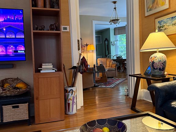 The house is over 100 years old. It is charming, and comfortable. We have lived here for over 40 years. We have updated and continue to update the quality of the appliances, furniture, carpeting, and all aspects of the house. There is a new oven, and microwave in the kitchen. There is new carpeting in the master bedroom, and in the living room. There is a new washer/dryer in the half bath. The bedrooms are a king in the master, a queen in second bedroom, and a twin in the third bedroom.