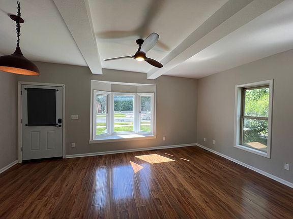 Apartment has updates and was just freshly painted. Has a private entrance, a beautiful bay window in the living room, an oversized master bedroom with a walk in closet/laundry room, a covered porch and separate yard with a shed provided for storage.