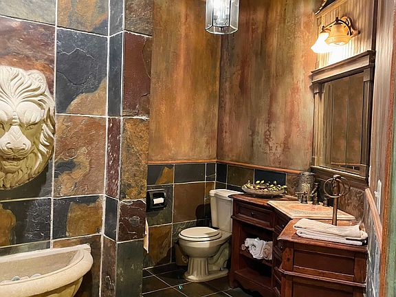 Stunning French Country estate on 2+ acres with 3,850 SF of inspired living space. Highlights include a chef's kitchen with cherry cabinets & granite counters, vaulted great room with 16' tall hand-carved marble fireplace, and private study. Upstairs, the primary suite offers a balcony, two-way marble fireplace, and spa bath with Jacuzzi beside a picture window.