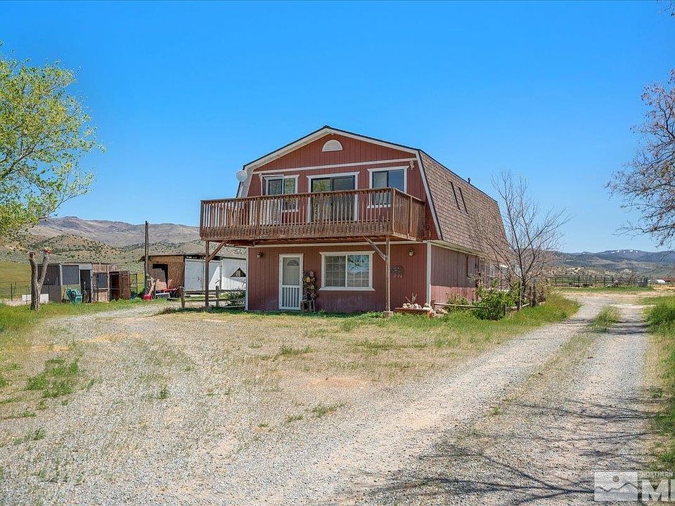 Calling all equine lovers! Situated on 40 picturesque acres, this quaint 1588 sq ft home provides a wonderful opportunity for simple living with great potential for remodeling. Step inside the main residence and discover earth tone interiors and a cozy kitchen with a cutting board countertop, welcoming breakfast bar and plenty of storage space. The kitchen area flows into an open space with an abundance of natural light and featuring sliding glass doors., The upstairs, with it's own exterior entrance, boasts the primary living area, the second bedroom and additional living space which opens to a lovely wooden balcony with sprawling Sierra Nevada perspectives. Outside the home, the property’s previously-loved facilities has significant potential for horse ownership and includes a small barn (with three stalls and a tack room), corral, and lush grazing pasture. If you’re searching for that private slice of desert paradise that just needs some love, look no further! Someone with a few horses and a big dream is going to love this place!