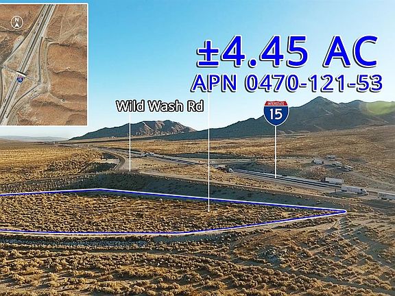 10 Acres of raw undeveloped land near Wild Wash Rd next to the I-15 freeway. Buyer to verify availability of utilities.