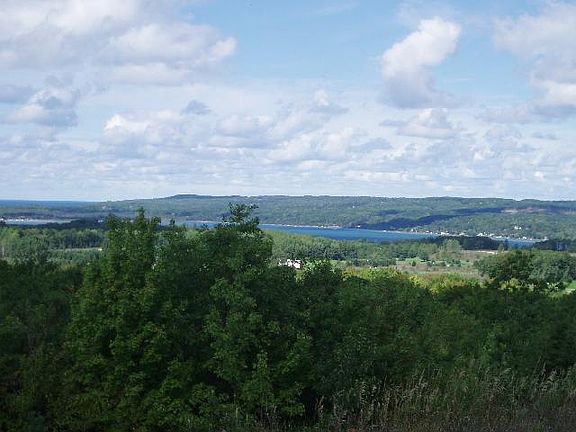 Huge view of LAKE MICHIGAN and PORTAGE LAKE as well as expansive views of the picturesque Onekama valley! Big, open, star filled sky views at night. 8.87 acres of rolling hills and valleys combining wooded areas with open spaces to maximize the water view. A stabilized driveway already in provides easy access to the premier building site on this parcel. Need to see how incredible in person. Pictures don't do it credit. Split rail fencing accents the entrance and a metal entrance gate is in place for privacy. An outbuilding is allowed. Minimum 1300 square feet for home. Underground utilities include electric and telephone. There will be a private road maintenance agreement to sign. Estimate about $250 to $300 per year. On the M-22 Corridor in lake, golf, skiing and hiking country!