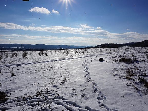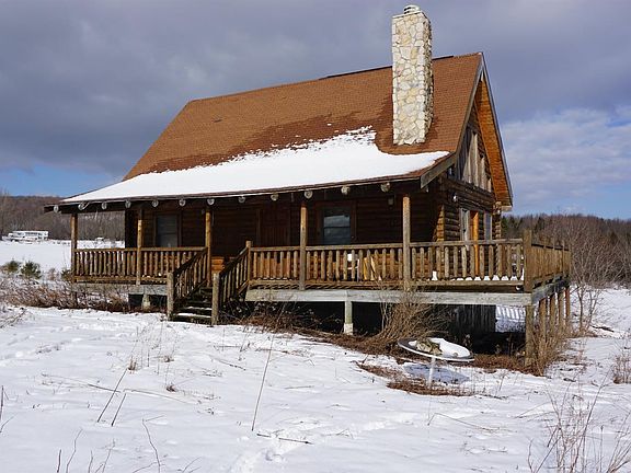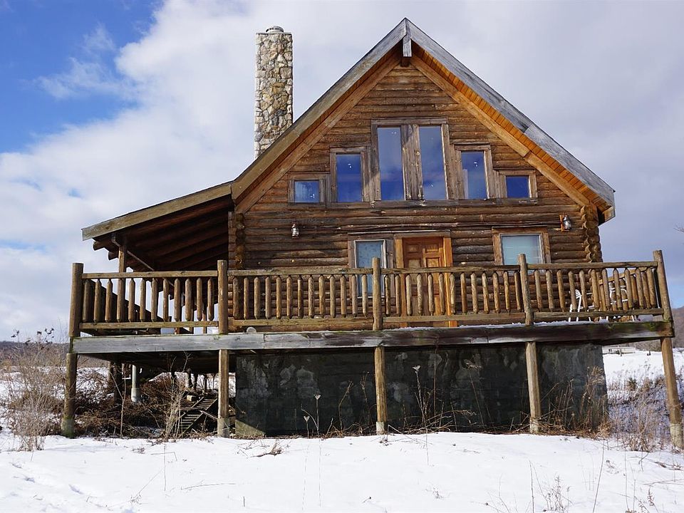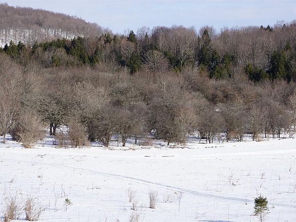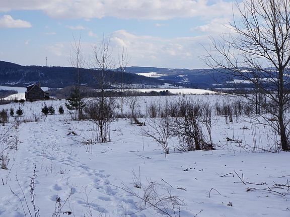 Look at The VIEWS! Just in time for Spring, This fantastic property is conveniently located, offers just over 50 acres, half wooded and half open with Stream and small pond! An old apple orchard still produces for the abundant wildlife, and comes with a nearly complete log cabin with an 8'x36' deck to enjoy the scenery! The 1200 sq ft cabin features a beautiful fireplace, bedroom and loft sleeping area. The kitchen and bathroom are left to finish as you see fit. Full basement is spacious and features a drive in garage space. 200 amp electrical service is already buried from the road 1200ft to the cabin. Perfect weekend getaway or full time residence. There is some finish work to complete, but it can be yours to decide how!