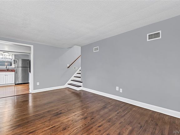Welcome home to the best value in top-rated Clarence School District! Fresh paint and refinished hardwood flooring greets you as you enter off of your front porch. The living room has loads of light coming from the windows, and leads to your fully appliance kitchen. Upstairs you’ll find 2 bedrooms with refinished hardwood flooring and a full bathroom. Your primary bedroom is sure to fit your furniture, and boasts a 14x8 bonus space currently being used as a walk-in closet. Ask us to see an example of how you can turn that space into a walk-in closet leading to a second full bathroom! Your laundry area measures 28 feet long and would make a perfect office space or second living area! Just a quick drive to Dash’s or Transit, this location ideal with low Clarence taxes!