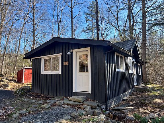 Charming and rustic, 1-bedroom cottage nestled in the woods, 10 minutes to both Woodstock and Phoenicia villages, 25 minutes to Belleayre and half an hour from Hunter. Up a hill off the New York City bus route, yet set in tranquil surroundings near a stream. Antique barn wood floors, gas range and refrigerator, large closet. Suitable for one person. AWD vehicle needed in winter. There is one other house on the property, which has separate parking and yard.