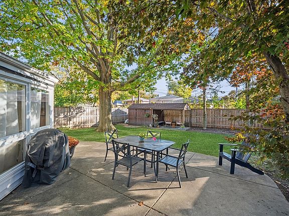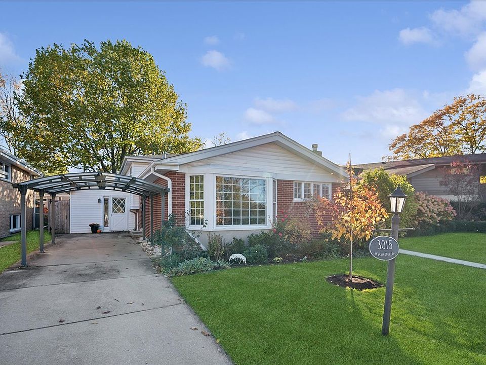 This beautifully maintained 4-bedroom, 3-full-bath brick home offers a fantastic open flow designed for comfortable everyday living and effortless entertaining. At the heart of the home is a large, thoughtfully designed eat-in kitchen featuring an island with breakfast bar, quartz countertops, tile backsplash, stainless sink, and classic white shaker cabinetry. Top-quality stainless-steel appliances include a Viking cooktop, Bosch oven and hood, Miele dishwasher, and Samsung refrigerator. The kitchen opens seamlessly to the living and dining areas, creating an ideal space for family gatherings and hosting. The vaulted living and dining rooms showcase hardwood floors, a large bay window that fills the space with natural light, and built-in cabinetry for both style and function. A convenient mudroom with benches and cubbies adds everyday practicality. A truly standout feature is the spacious private office, complete with built-in bookcases and a built-in desk-an exceptional work-from-home retreat. The primary bedroom offers a large closet along with built-in cabinets and shelving, while the renovated primary bath impresses with a sliding barn door, double-sink vanity, and walk-in shower. Two additional well-sized bedrooms and an updated hall bath with double-bowl vanity and tub/shower complete the second floor. The lower level provides a large family room, a fourth bedroom, a generous pantry, and an updated full bath with a walk-in shower. An additional sub-basement features a spacious rec room, offering even more flexible living space. Recent updates include a newer water heater (2021). Outdoor living is just as inviting, with a large private backyard perfect for BBQs, a patio, and a beautiful storage shed. The home also includes bike storage, a carport, and beautifully landscaped yards perfect for family activities. Ideally located, this home is an easy walk to Romona Elementary School, Wilmette Junior High, and Community Park, sits next to Keay Nature Center, and is just a short stroll to shops and restaurants-making it a truly special place to call home.