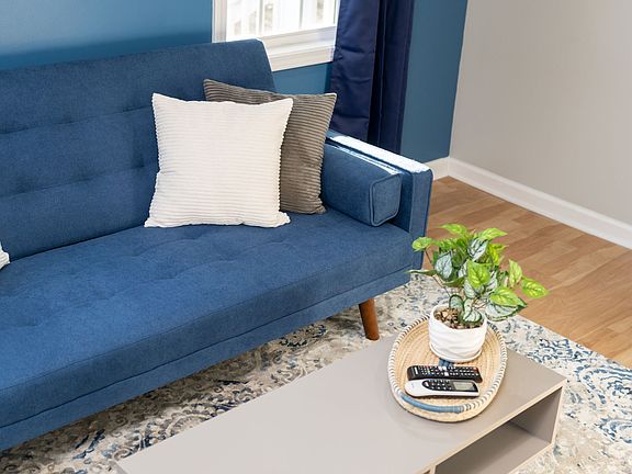 Welcome to The Navy Nest - a serene first floor apartment adorned with shades of blue! As soon as you step into this cozy abode, you will instantly feel relaxed and at ease. The thoughtfully designed color scheme exudes a sense of calmness, and encourages comfort for your stay.