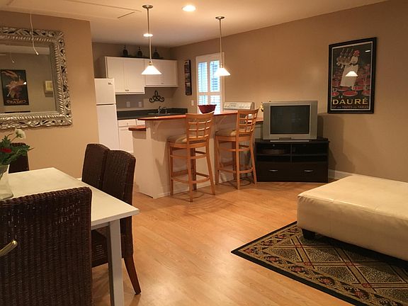 (1 month - 12 mth ) available $1350 , $100 utilities ; private over garage apartment/home setting -furnished-1 bed / 1 bath , 800 sq ft, private yard ,off street parking, washer/dryer ,refrigerator , dishwasher and stove.