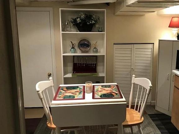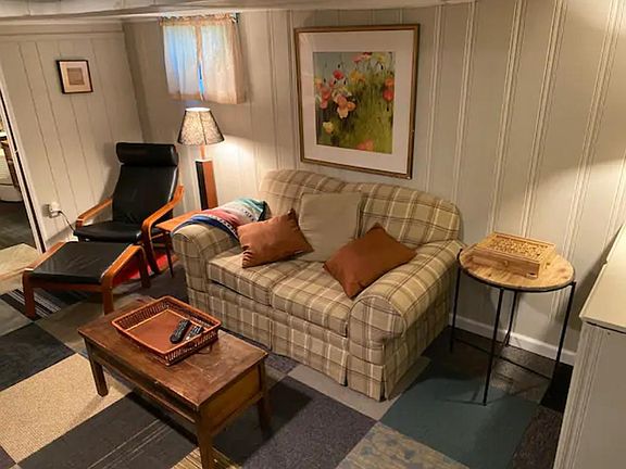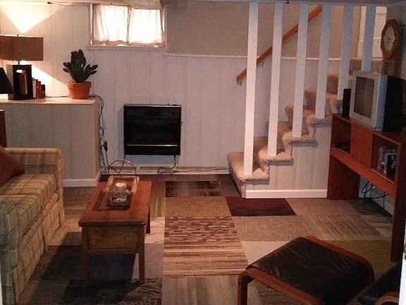Cozy approx. 750 Sq. Ft FULLY FURNISHED basement apartment. 1 BR 1BA w/shower/ Kitchen ( full sized fridge but no stove -- there is Microwave and Hot Plates and electric skillet etc. otherwise fully stocked kitchen. Small outdoor seating area. This English basement apt is just three blocks from the downtown walking mall. Great area!