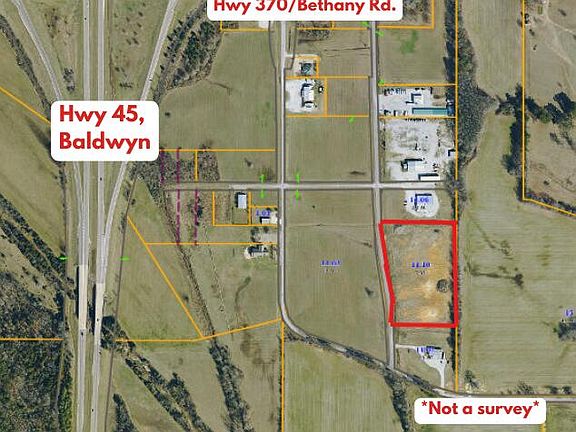 7 acre commercial land in the heart of Baldwyn! Excellent property to build your dream business. Property has easy access to Highway 45. It is cleared and ready to build on! Property has all utilities including fiber internet. Zoned C2 Highway Commercial, according to Lee County Code Enforcement. Call us today for your private showing of the perfect spot to develop business!