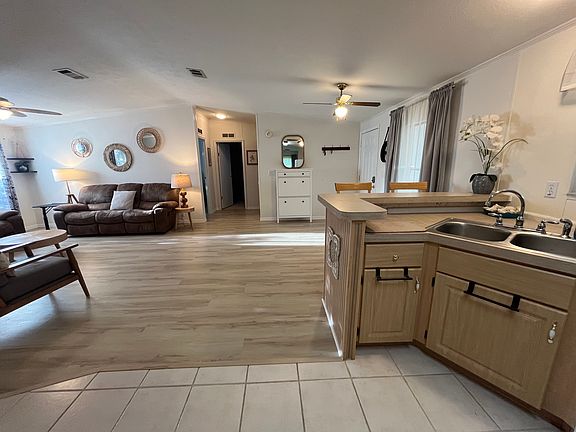 Desirable Winter Garden Schools! 3 Bedroom, 2 full bath, manufactured home with screen rear porch and expanded driveway that can accommodate 4 cars easily. Vista Del Lago is a community with a clubhouse, workout gym, tennis court, permanent newer pickleball courts, basketball court, billiard room, playground, shuffleboard, lake with ramp, 3 pools, and 2 hot tubs. Home has newer flooring, additional updates, spacious layout and is clean. Can be rented furnished or unfurnished.