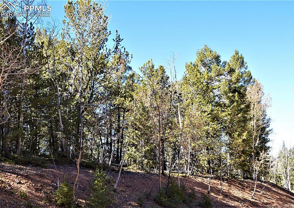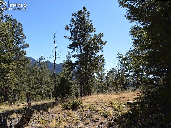 Private alpine lot almost at the top of the road. Glimpses of Pikes Peak, Sentinel Point, 39-Mile Mt, Black Mtn and the Continental Divide, you just need to clear some trees to take full advantage of the views. Ideal for a walk-out basement and extended deck. Easy access from county-maintained roads. Multiple game trails cross the property. Minutes from Mueller State Park and Dome Rock State Wildlife Area, and both BLM and National Forest land are just up the road. Centrally located within a short drive to world-class recreation, and a lifestyle away from the big city.