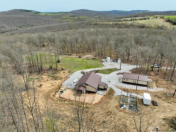 The Mountaintop Retreat with a custom-built cabin in the Ozark Mountains is a stunning property that offers privacy, seclusion, and breathtaking views. Situated in an ideal location with numerous potential building sites, this property offers a unique opportunity to create your own mountain paradise. The gated entrance ensures that you have complete privacy and security, making it the perfect location for a peaceful and serene lifestyle. The cabin itself is a work of art, featuring custom wood accents throughout, a wood-burning stove, two bedrooms with two full baths, and a 10x10 bonus room that could be a 3rd bedroom. The large open floor plan provides plenty of space for entertaining, while the large covered front porch offers stunning panoramic views of the Ozarks, making it the perfect spot to relax and unwind after a long day. The property also features a large 30x40 detached garage/shop that provides ample storage space for all your equipment and tools. The water well with a filtration system ensures that you have access to clean and fresh water, even in the most remote locations. If you are an outdoor enthusiast, this property is the perfect place for you.