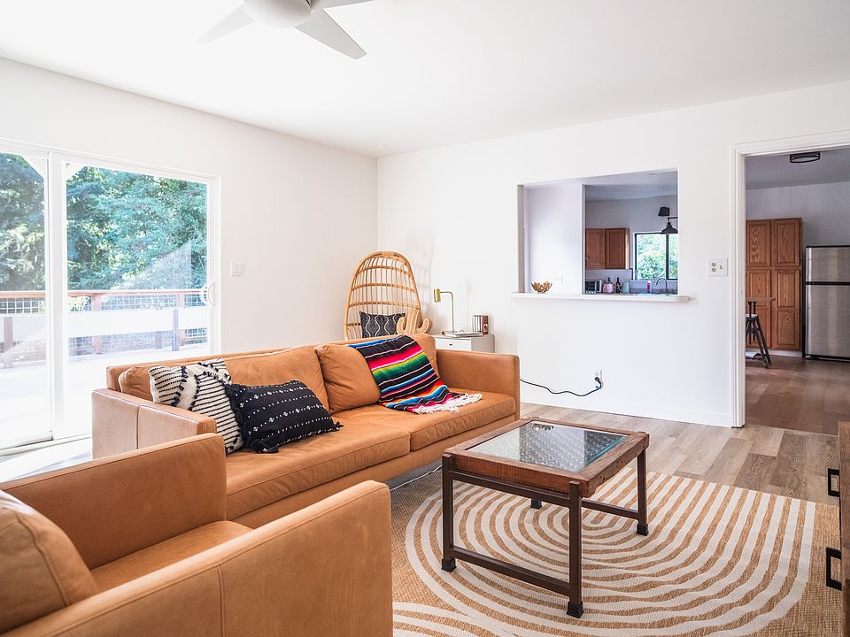 Enjoy peaceful forest living in this beautifully furnished, private lower-level suite located in the redwood forests of Woodacre. This bright and spacious 1,100 sq ft unit features a large master suite with bath, a generous living room, and a full eat-in kitchen all designed for comfort during medium-term stays.