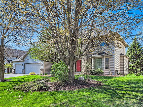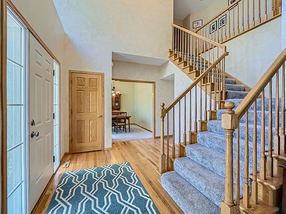 Welcome home to this 5 bedroom and 4 bath home featuring over 3500 finished squarefeet. (5th bedroom is used as an office in lower level and has built-ins) The home boasts a spacious kitchen with pantry and plenty of counter space. Hardwood floors in kitchen/entry and newer carpet on main/upper level. Plenty of built in shelves surrounding the gas fireplace on main level. A sunroom is located just off the kitchen along with a deck for watching golfers on Eagle Valley Tee #4. Primary bedroom has a large shower with a separate whirlpool tub plus large walk-in closet. Lower level features an office with built-in desk (or 5th bedroom), a bar area with additional full size refrigerator and great space for movie night. Plenty of storage space is available in the utility room along with space in the 3 car garage.