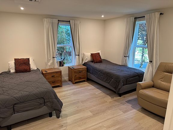 This bright and spacious 2-master bedroom, 2.5-bath attached ADU encompasses an entire ground floor, with the bedrooms featuring walk-through closets. Bonus enclosed sunroom!