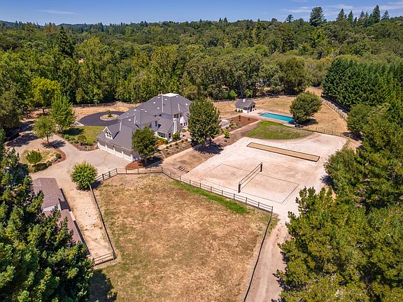 The outdoor space, also newly renovated, features an inviting pool and spa, and under the separate pool house overhang, a kitchen area with BBQ. A lawn area, bocce court, and a sand volleyball court are set within lush, tree-lined fencing. Enjoy easy access to the extensive hiking or riding trails in Wunderlich Park. Equestrians will find a well-appointed barn with turnouts and an enclosed paddock.