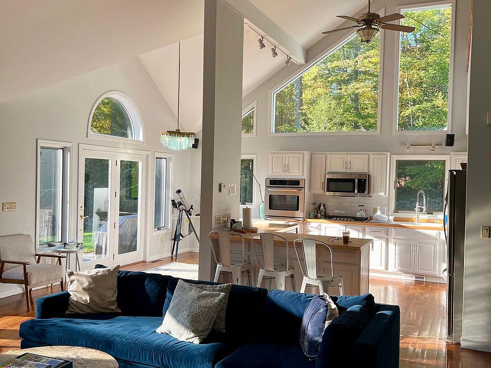 Our great room streams sunlight all day long while the bedrooms are all equipped with shades. Large new 60 inch tv in the main room for movie nights and Sunday games. New outdoor basketball hoop!