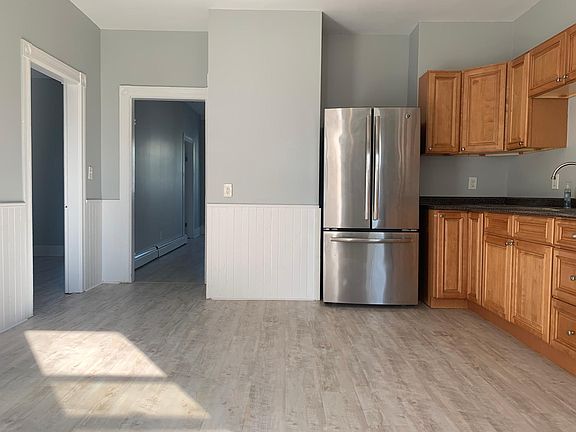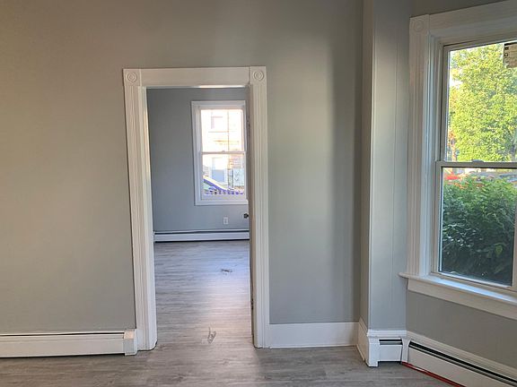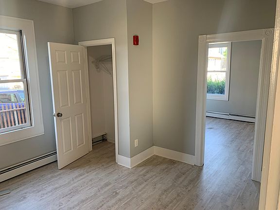 This 1st-floor 2BR apartment has been renovated and is located on a quite street steps from downtown Woonsocket. The two bedrooms have natural light, closet space and electrical outlets. The eat in kitchen has new flooring with shelving and plenty of cabinet space for cooking and storage. The living room area includes closet space and bay windows for natural light. There are two entrances to the apartment to provide the tenant with options for entering the apartment.