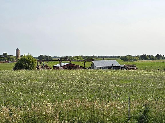 The property boasts a mixture of crop land, pasture, a small wood, and a pond, offering diverse opportunities for farming, livestock, or recreational activities.