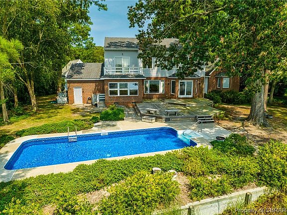 Come home to the East River! Solid brick Cape Cod with separate garage apartment to meet all your living & playing needs. Gorgeous plantings for all season color. Quality throughout - Pella windows, HW flooring, 20 KW generator, kitchen with butlers pantry, 2 separate spacious primary bedrooms, lovely deck from upstairs bedrooms! Chlorine pool (3-5 feet) with new liner 2022; Deeded shared pier on DEEP water (6+MLW) with 5K lift & wiring for add'l 12K lift. Separate garage apartment for guests - large living space with full kitchen and bath, plus oversized waterview deck. Intimate neighborhood of lovely homes, just minutes to amenities of both Mathews and Gloucester. This home was built for entertaining and enjoying the waterfront life!