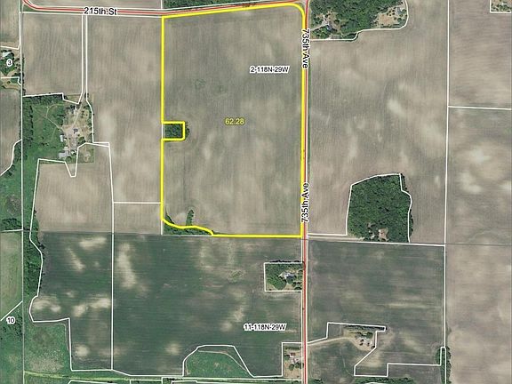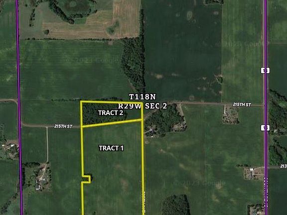 This is tract 1 of a 2 tract auction. This is a tillable tract that lies south of 215th St. and totals approx. 64.4 +/- acres with 62.28 +/- FSA tillable acres. The average overall CPI rating is 93.1. Tile is present on the property with open intakes being present and a drainage easement for the main line leading off of the property. Tract is accessible from the N and also the east sides. Seller states that this tract will have “open tenancy” for and new owner if desired for the upcoming 2024 crop season. If tract 1 and 2 are purchased separately, sellers will work through the split of the existing parcel. Acreage is approx. but final surveyed acres will be known prior to auction. Taxes due to the split and not having 2024 numbers are approx. Auction will be held at 10am on Feb. 29th at the Dassel City Hall Community room located at 460 3rd St. N Dassel, MN