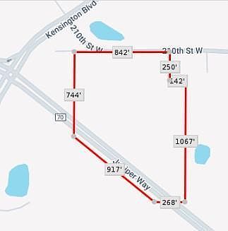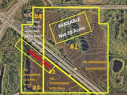 RARE 20 buildable prime acres for OP Zoning Commercial Development Hotel, Office Park, Restaurant, See City Planners for details and guidance. City Services-Water, Sewer, Electric. Frontage on New 4 lane Co. Rd 70 & upgraded 210th St. ACCESS Area businesses include: Amazon 700,000 SF Distribution Center, FedEx Distribution Ctr, Schneiderman's Warehouse & Distribution Center, Airlake Business Park/airport, Walmart, Theaters, Numerous Restaurants and Hotels, Holiday & Speedway Convenience Stores. Convenient location just 28 Minutes to Minneapolis or St Paul, and 21 minutes to MSP International Airport. Additional land available ask for details.