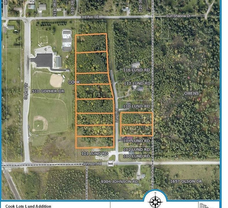 10 platted, wooded lots ranging from ¾ to 1 acre in size in Cook (Lund Addition) with city water and sewer into each lot. Electric/phone also available. Backs up to the Doug Johnson Recreation Area making it a desirable area for new housing. If you’re a builder, developer, investor, or entrepreneur this might be the perfect investment. Priced to sell.