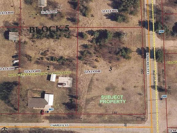 Park Rapids corner lot sized at over an acre. 2/3rd's of the property is cleared and shovel ready while the balance is wooded. Central location bordered by Charles St on the south and Eastern Ave on the east. Both are paved city streets. Currently zoned R1 (residential) with no restrictive covenants. For the investor or builder, this potentially makes for an excellent R2 or R3 zoned opportunity. City utilities are to and run along the property boundary.