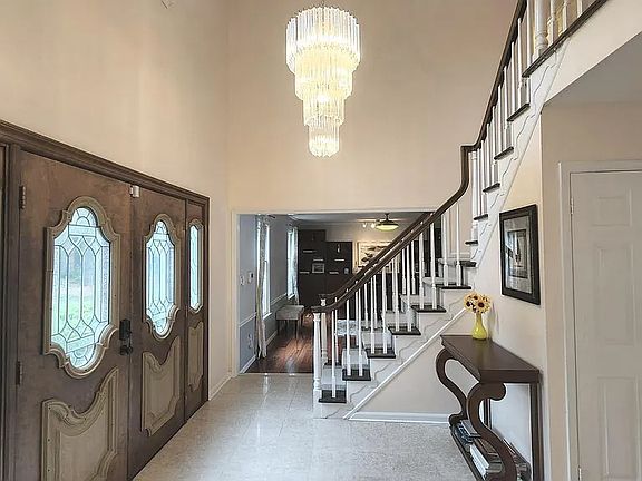 Wood-burning fireplaceInground poolFinished basementJacuzzi tubMarble floorUpdated hall bathroomImpressive two-story space