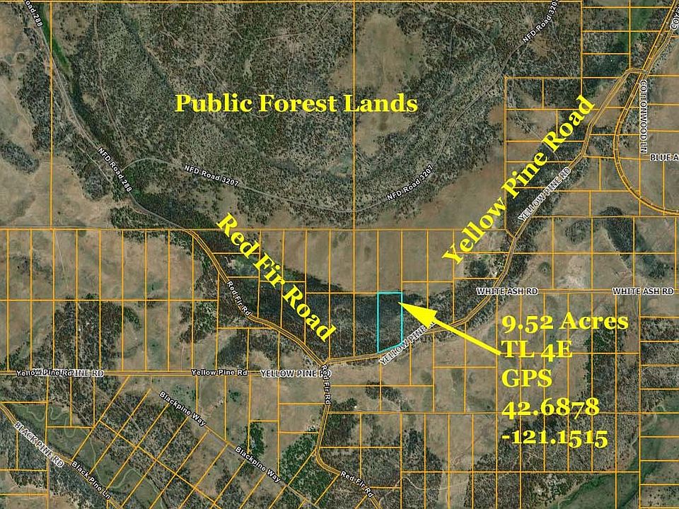 9.52 Acres with exceptional dirt and gravel road access. Situated very nicely in Beatty Oregon in the Klamath Fall Forest Estates Sycan Unit. This lovely, huge parcel is just 2-3 minutes from tens of thousands of acres of public forest lands and just minutes from remarkable fishing in the Sycan River if you desire to. It is a Great parcel in a great location just a short hop from the paved Red Fir Road. This parcel was part of the 2021 Bootleg Fire, but it is healing nicely and there are some larger trees still alive. Many opportunities here. The parcel is zone R5 and is buildable. Perfect for a homestead. Priced to sell quickly. Come take a look and make plans to purchase and play. No seller carry.Directions: Red Fir Road X Yellow Pine Road. The parcel is on the left. GPS 42.6878 -121.1515