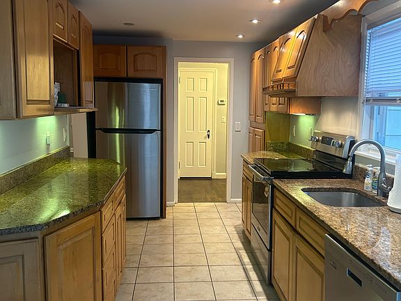 Freshly painted spacious first floor three bedroom with eat in kitchen dining area and living room three large bedrooms and walk out patio great location walk to buses trains and stores