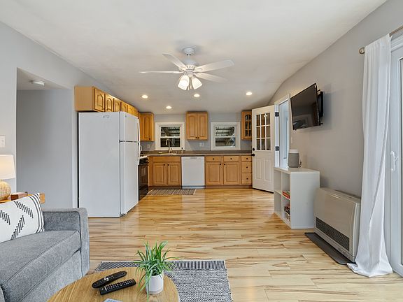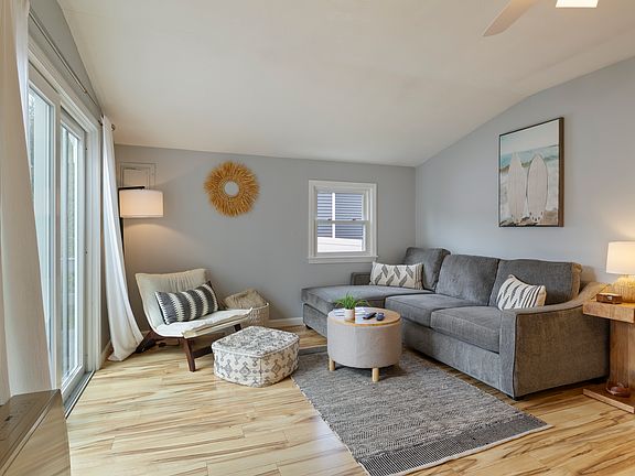 Located on a quiet, private road just 0.4mi to the highly desirable and beloved Long Sands Beach. Previously used as a income-producing long-term rental, this could be an ideal opportunity for beach-lovers and investors alike. Step inside through the 3 season sunroom and you will be greeted with a bright and airy open-concept living/kitchen space. Just down the hall are two cozy bedrooms, a full bathroom, washer & dryer and secondary entrance via the carport. The Rinnai propane heat source does an excellent job heating the home, with supplementary electric baseboard in the bedroom & bathroom. Electric storage tank water heater & expansion tank replaced 7/18/2024. NOTE** shed has been removed from property and will not be conveyed with sale.