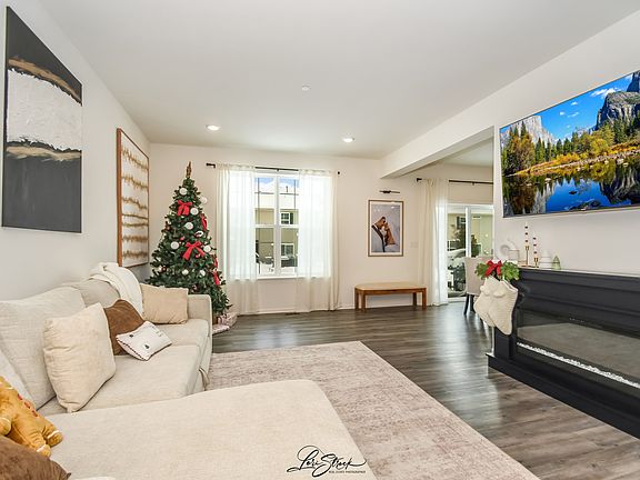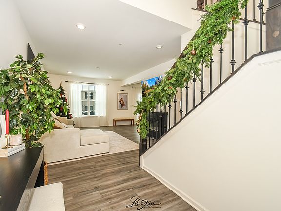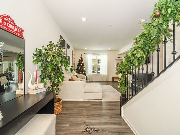 You are welcomed by a bright, airy floor plan with a spacious great room and high-end finishes throughout. This home offers the open floor plan-perfect for entertaining or everyday living. The eat-in kitchen features quartz countertops, stainless steel appliances, upgraded modern cabinetry, and a pantry. The dining area opens directly to the patio-ideal for grilling and outdoor gatherings. The first floor impresses with 9-foot ceilings, luxury vinyl plank flooring, and an abundance of natural light. Upstairs, retreat to a luxurious owner's suite complete with two walk-in closets and a spa-like bath featuring a designer walk-in shower. You'll also appreciate the convenience of a second-floor laundry room. This home is fully WiFi-certified and equipped with smart home technology, including remote thermostat access, wireless touch entry, and a Ring video doorbell-ensuring connectivity with zero blackout spots. Garage is equipped with myQ and front door has a smart level lock.