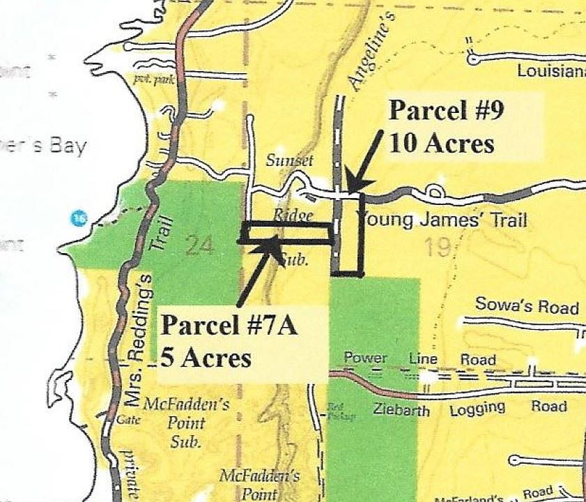 10 Acres near the end of Young James' Trail in the Sunset Ridge Subdivision. This parcel has legal access to roads and trails to Lake Michigan and the State Land on Greiner's Bay and Oliver's Point to the west.