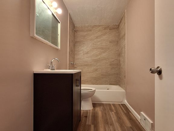 Freshly painted house with full remodel bathroom, hardwood floors Through first floor, luxury Laminate flooring in Kitchen and Upstairs Bedroom. Nice dry Basement, higher efficiency furnace, new Hot Water Tank, new Pex plumbing. One car detached garage with garage door opener.