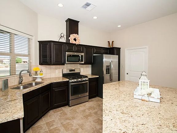 Beautiful 3 bedroom, 2 bathroom home in Sierra Montana subdivision near grocery stores and restaurants. The home is furnished, includes a washer and dryer. The spacious kitchen has granite countertops and plenty of cabinetry. The home has a spacious front and backyard with natural grass and sprinkler system.