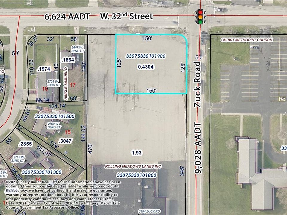 0.43± Acre commercial development site for lease at $55,000/year - NNN. Located at a the signalized intersection of Zuck Road & W. 32nd Street. 125' frontage along Zuck Road with 9,028 Ave. Annual Daily Traffic & 150' frontage along W. 32nd Street with 6,624 AADT (2020). Just 1.2 miles from I-79 (Exit 182) & 4.7 miles to I90 (Exit 22). Zoned C-2, General Commercial District, allowing for many potential uses: retail, car wash, office, day care, banks, veterinary clinic, etc.