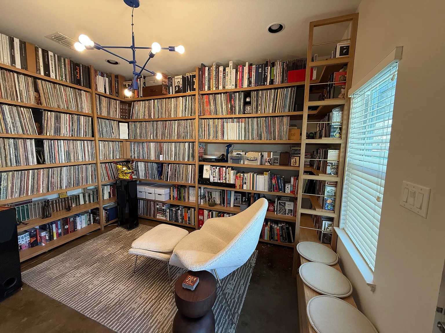 While the soaring ceilings, concrete floors, and Bosch appliances set a modern stage, this San Antonio rental’s true opening act is the study on the first floor. Currently serving as a dedicated listening room stuffed full of vinyl records, this space is a dream for any collector looking to escape into their favorite albums. Whether you’re spinning soul classics or enjoying downtown views from your private balcony, this home offers a high-fidelity lifestyle in the heart of the city.