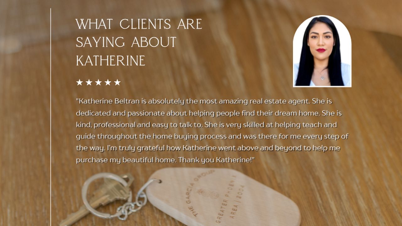I’m Katherine Beltran, a West Valley REALTOR® with eXp Realty, proudly serving Litchfield Park, Goodyear, Buckeye, Surprise, Avondale, and the greater Phoenix area. I specialize in helping buyers, sellers, and out of state families make a smooth move to Arizona. Known for my responsive communication, local expertise, and personalize approach, I’m dedicated to guiding my clients through every step of the process with care and confidence. I am Bili...