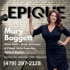 Mary Baggett specializes in helping clients buy and sell homes in NW Arkansas and North Florida. Visit Mary online at www.MaryBaggett.EpiqueRealty.com. Mary was licensed and began her real estate career in 2003. As a buyer or seller, you need to know you can trust the person you've chosen to help you with the process. This is one of the most important decisions you will ever make, and Mary Baggett has the experience, expertise, and knowledge t...