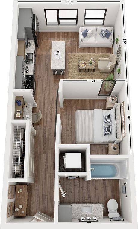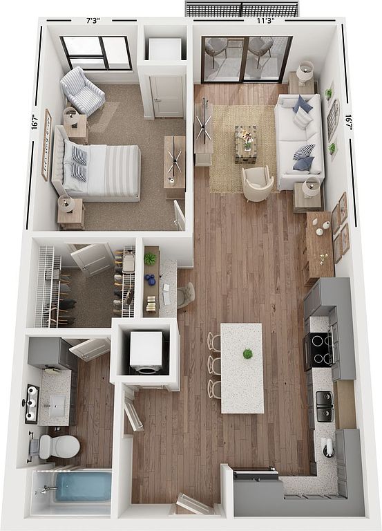 Lynvue's alcove, studio, 1, 2, and 3-bedroom floor plans were expertly designed to maximize space. Each apartment home is filled with natural light, open-concept contemporary kitchens and in-home washer and dryer. Upgraded hand-picked finishes include-wood inspired flooring, tile backsplash, and quartz countertops that create an upgraded living experience.